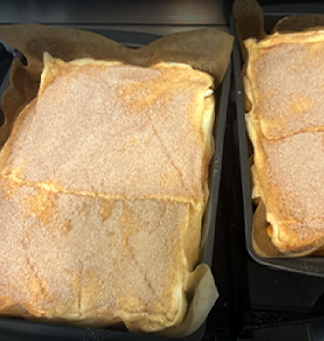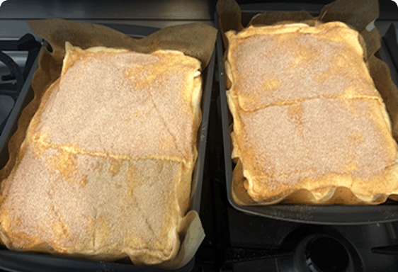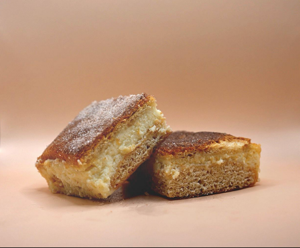 Cinnamon-sugar crescent layers with creamy cheesecake filling, finished with cinnamon and sugar