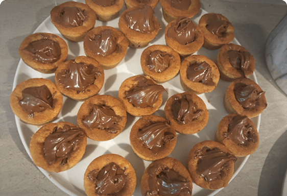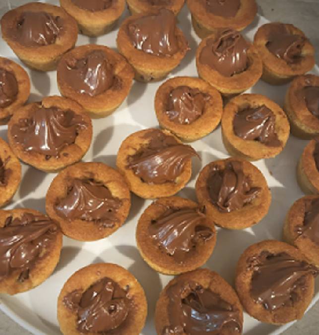 Chocolate chip cookie cups filled with Nutella