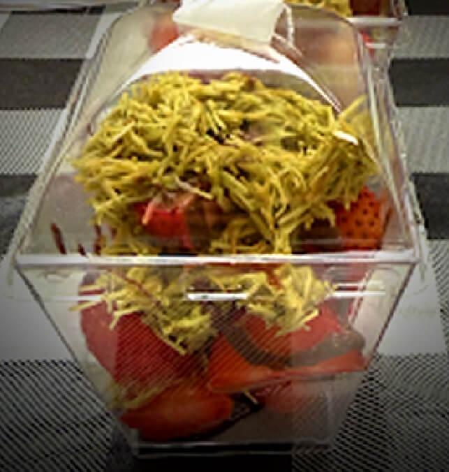 Dubai-style cream layered with chocolate and fresh strawberries