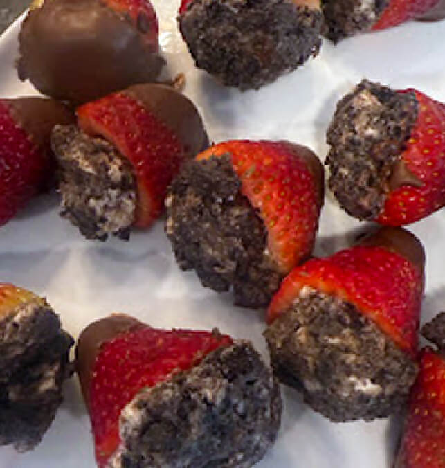 Fresh strawberries filled with Oreo cream cheese